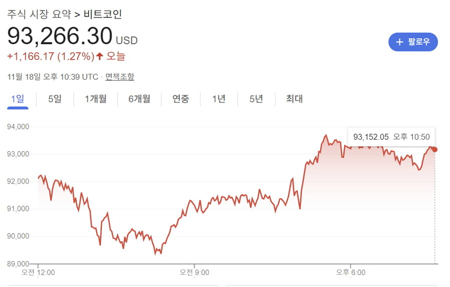 이에 투자심리가 조금씩 회복되면서 저가 매수세가 유입됐습니다이는 비트코인에서 잘 드러나는데요비트코인은 오늘 아침 잠시 9만 달러 아래로 떨어지기도 했지만, 오후에는 9만3000달러 대까지 반등했습니다.