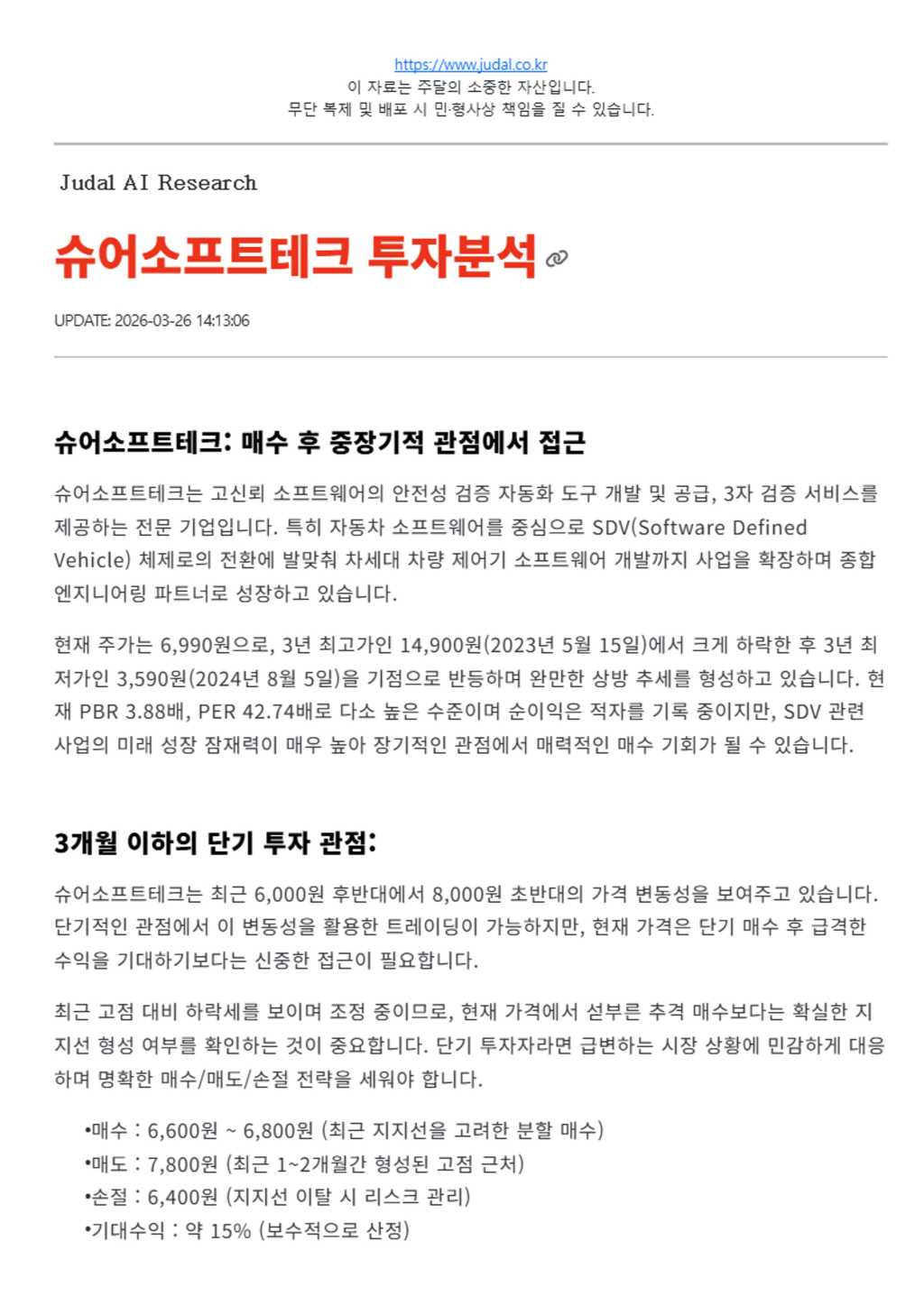 슈어소프트테크 투자분석 (2026-03-26)